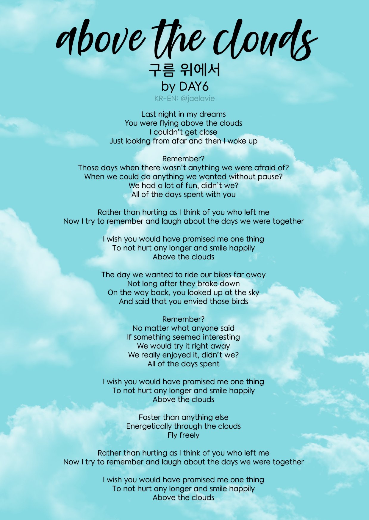 I dont want any scars in your heart. Day 6 Your boyish reassurance is not reassuring And I need it And all of my devotion turns violent When you go to her dont. Mar 14 2021 - Explore Maeshats board Day6 quotes on Pinterest. Find images and videos about wallpaper yellow and. Jae Sungjin Young K Wonpil. I want to hurt instead of you. Discover more posts about day6-lyrics.